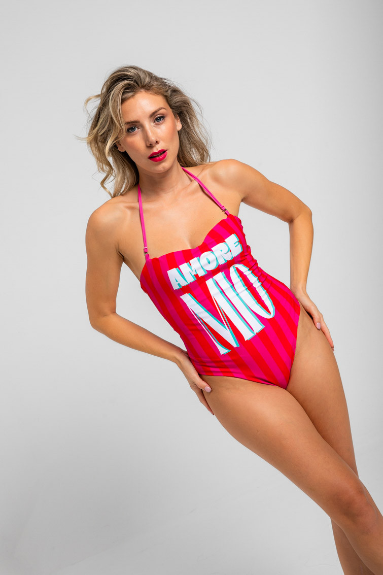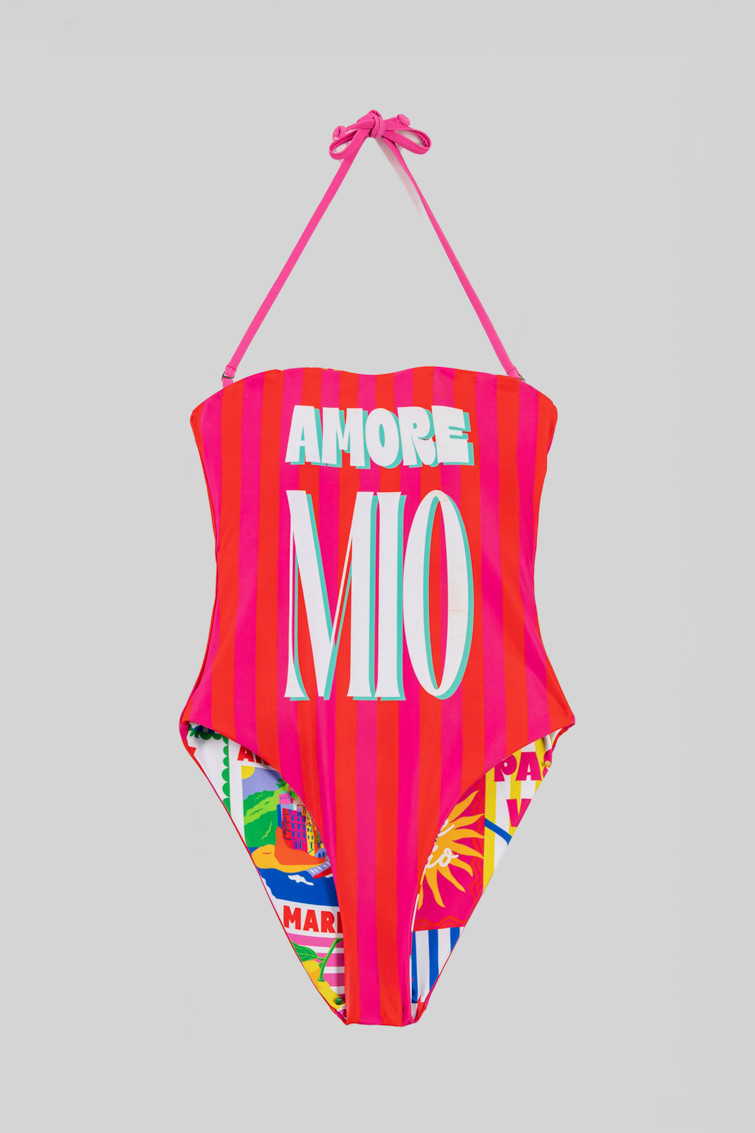 Bañador escote corazón reversible de estampado collage italiano - Dolce Far Niente
