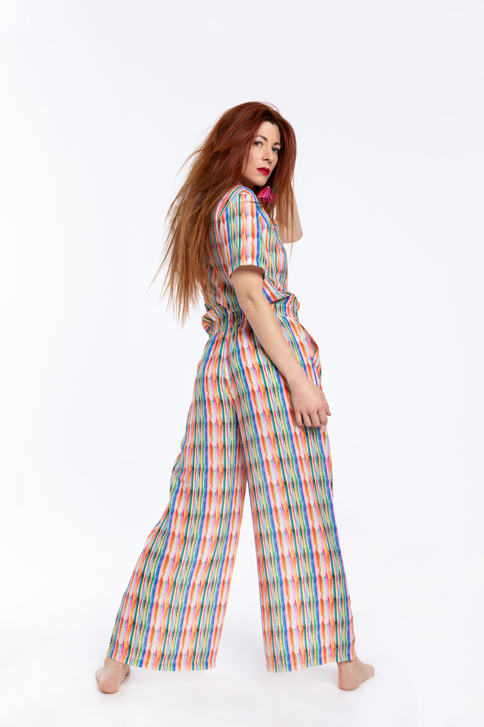 Rainbow. A collection of positive and cheerful attitude with a colorful watercolor made by our creative director Carolina Orts. · Light fabric shirt with watercolor type print. · V-neck shirt collar. · Front button closure. · Short sleeves. · The model is wearing size S and is 174 cm tall. COMPOSITION AND CARE Machine wash in cold water. Do not bleach. Do not tumble dry. Hang to dry in the shade. Iron at a maximum temperature of the soleplate of 110º. Wash with similar colours. COMPOSITION: 100% polyester. Colour Printed.