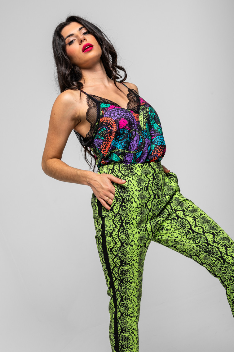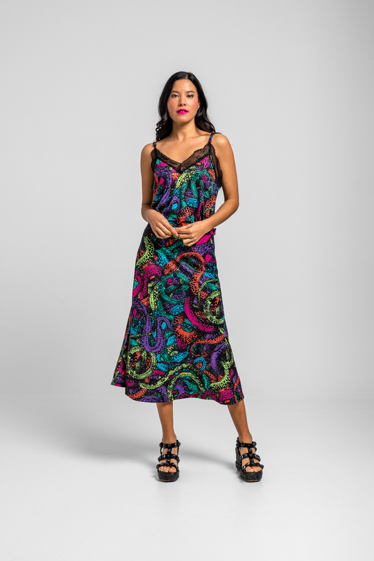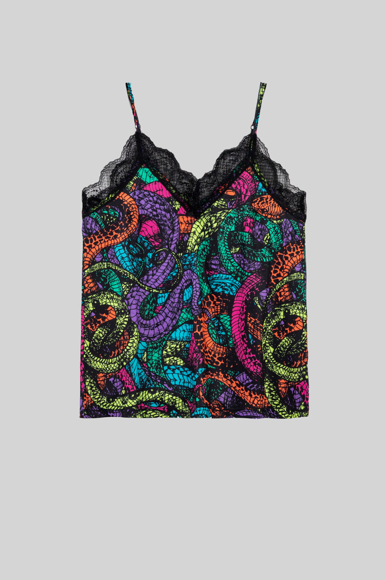 Veneno: dicen que tengo veneno en la piel - Blusa lencera de serpientes: Blusa lencera de tejido fluido elástico, encaje en escote y tirantes ajustables. - 95% Poliéster y 5% Elastán. - Lavar a máquina en agua fría. No usar blanqueador. No usar secadora. Secar colgado a la sombra. Planchado a temperatura baja, por debajo de 100 ºC. Planchar del revés. No dejar la plancha parada sobre la prenda. Lavar con colores similares. - TALLA XS: Medidas de pecho 43 cm, ancho de prenda 52 cm y largo 34,5 cm. TALLA S: Medidas de pecho 45 cm, ancho de prenda 54 cm y largo 36 cm. TALLA M: Medidas de pecho 47 cm, ancho de prenda 56 cm y largo 37,5 cm. TALLA L: Medidas de pecho 49 cm, ancho de prenda 58 cm y largo 39 cm. TALLA XL: Medidas de pecho 51 cm, ancho de prenda 60 cm y largo 40,5 cm. - Las medidas de las prendas pueden presentar pequeñas variaciones debido al proceso de producción de hasta 2 cm. - Lolina ha realizado un gran esfuerzo para mostrar los colores de las prendas de la forma más cercana a la realidad posible. No obstante, queremos que tengas en cuenta que el color de las prendas que aparecen en pantalla puede estar sujeto a variaciones dependiendo de la calidad de tu ordenador o smartphone.