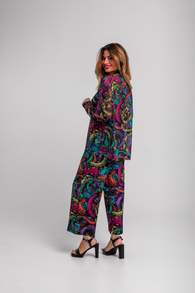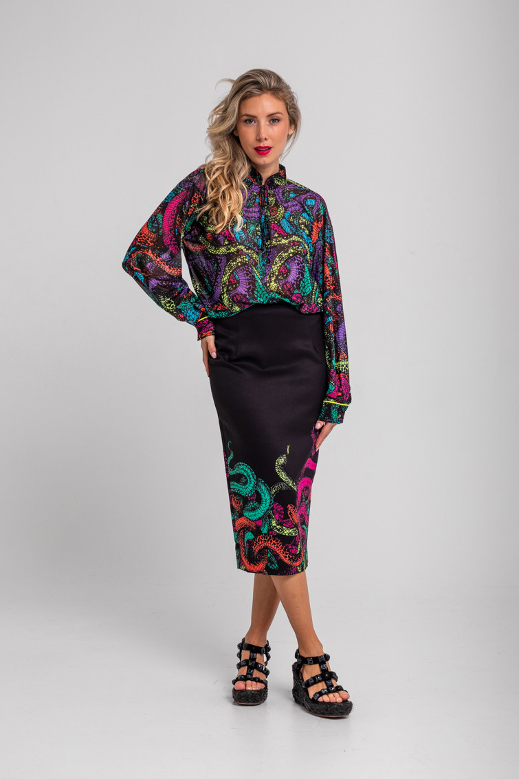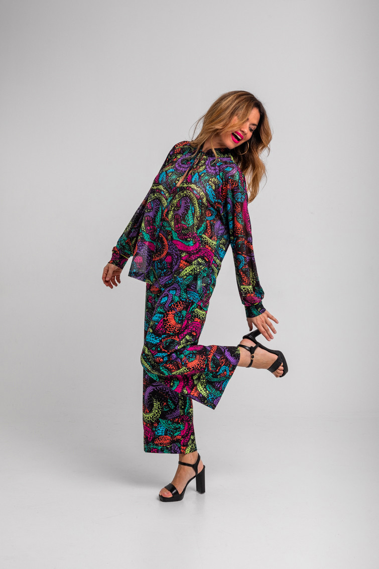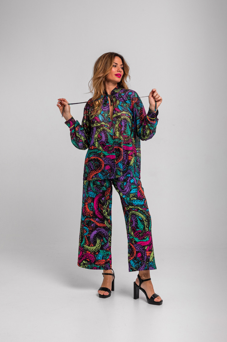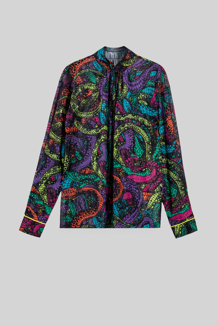 Veneno: dicen que tengo veneno en la piel - Camisa de tul estilo Tomboy de serpientes: Camisa en tejido fluido de corte holgado y recto con cuello solapa en V y sin botonadura frontal visible. Diseño de manga larga con puños de estilo camisero. - 95% Poliéster y 5% Elastán. - Lavar a máquina en agua fría. No usar blanqueador. No usar secadora. Secar colgado a la sombra. Planchado a temperatura baja, por debajo de 100 ºC. Planchar del revés. No dejar la plancha parada sobre la prenda. Lavar con colores similares. - TALLA XS: Medida de pecho 57 cm, medida del bajo 65 cm y largo del cuerpo 63,5 cm. TALLA S: Medida de pecho 59 cm, medida del bajo 67 cm y largo del cuerpo 65 cm. TALLA M: Medida de pecho 61 cm, medida del bajo 69 cm y largo del cuerpo 66,5 cm. TALLA L: Medida de pecho 63 cm, medida del bajo 71 cm y largo del cuerpo 68 cm. TALLA XL: Medida de pecho 65 cm, medida del bajo 73 cm y largo del cuerpo 69,5 cm. TALLA XXL: Medida de pecho 67 cm, medida del bajo 75 cm y largo del cuerpo 71 cm. - Las medidas de las prendas pueden presentar pequeñas variaciones debido al proceso de producción de hasta 2 cm. - Lolina ha realizado un gran esfuerzo para mostrar los colores de las prendas de la forma más cercana a la realidad posible. No obstante, queremos que tengas en cuenta que el color de las prendas que aparecen en pantalla puede estar sujeto a variaciones dependiendo de la calidad de tu ordenador o smartphone.