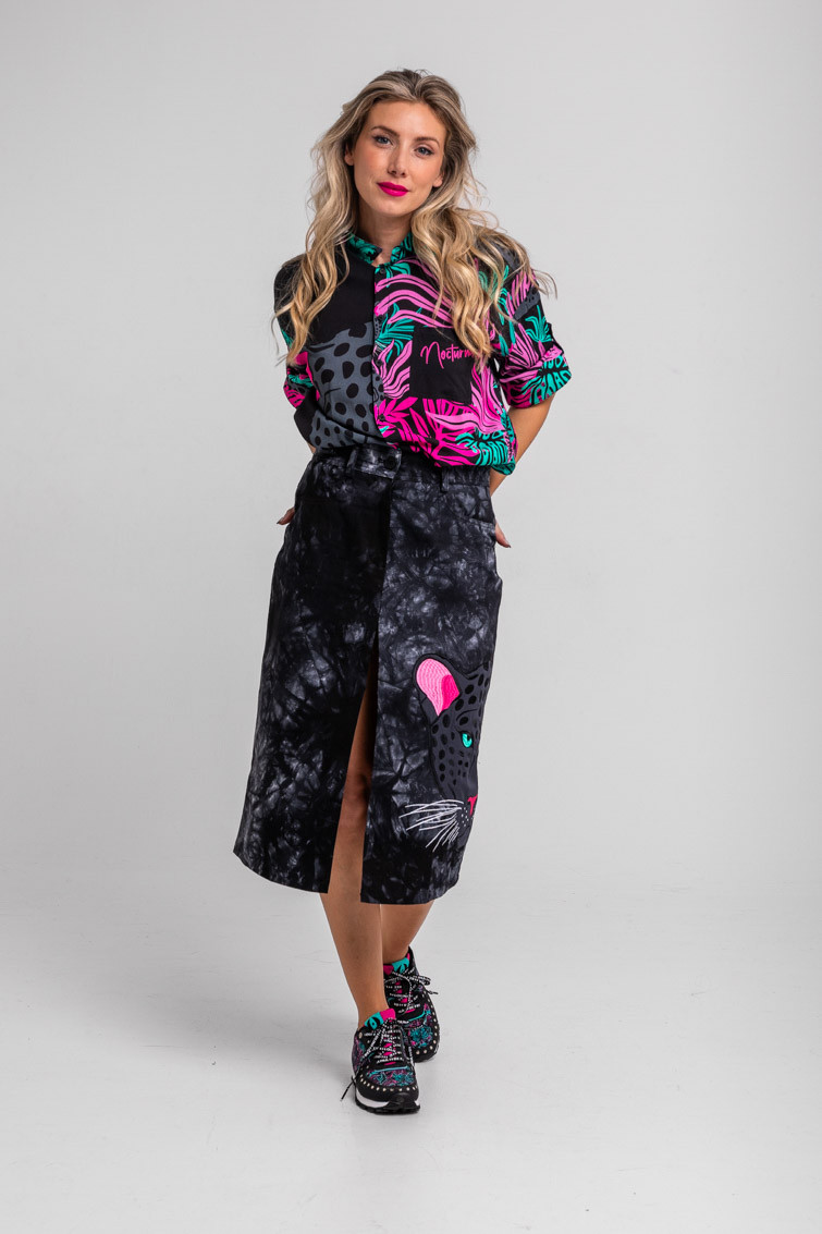 Nocturna: y siembre al acecho intentando cazar al tiempo - Camisa safari de hojas y panteras: Camisa de tela ligera. Cuello de camisa en pico. Cierre frontal con botones. Manga corta vuelta. - 100% Viscosa. - Lavar a máquina en agua fría en centrifugado corto. No usar blanqueador. No usar secadora. Secar colgado a la sombra. Planchado a temperatura baja, por debajo de 100 ºC. Planchar del revés. No dejar la plancha parada sobre la prenda. Lavar con colores similares. - TALLA XS: Medida de pecho 57 cm, medida del bajo 60 cm y largo del cuerpo 65.5 cm.TALLA S: Medida de pecho 59 cm, medida del bajo 62 cm y largo del cuerpo 67 cm.TALLA M: Medida de pecho 61 cm, medida del bajo 64 cm y largo del cuerpo 68.5 cm.TALLA L: Medida de pecho 63 cm, medida del bajo 66 cm y largo del cuerpo 70 cm.TALLA XL: Medida de pecho 65 cm, medida del bajo 68 cm y largo del cuerpo 71.5 cm. - Las medidas de las prendas pueden presentar pequeñas variaciones debido al proceso de producción de hasta 2 cm. - Lolina ha realizado un gran esfuerzo para mostrar los colores de las prendas de la forma más cercana a la realidad posible. No obstante, queremos que tengas en cuenta que el color de las prendas que aparecen en pantalla puede estar sujeto a variaciones dependiendo de la calidad de tu ordenador o smartphone.