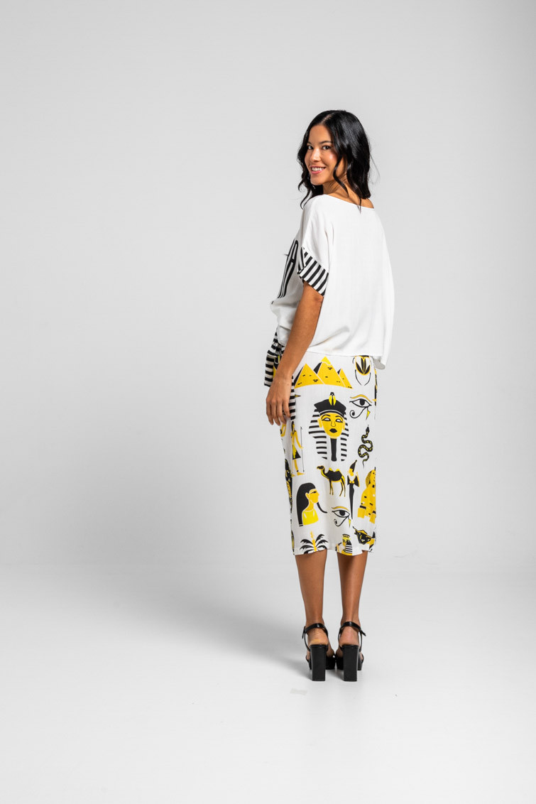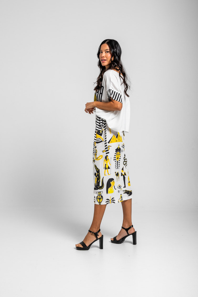 Blusa de corte cuadrado blanca con texto Cleopatra - La Faraona
