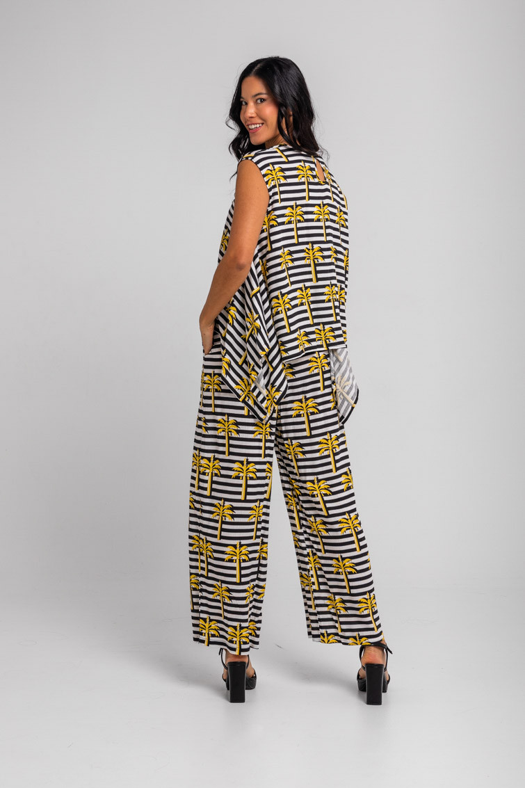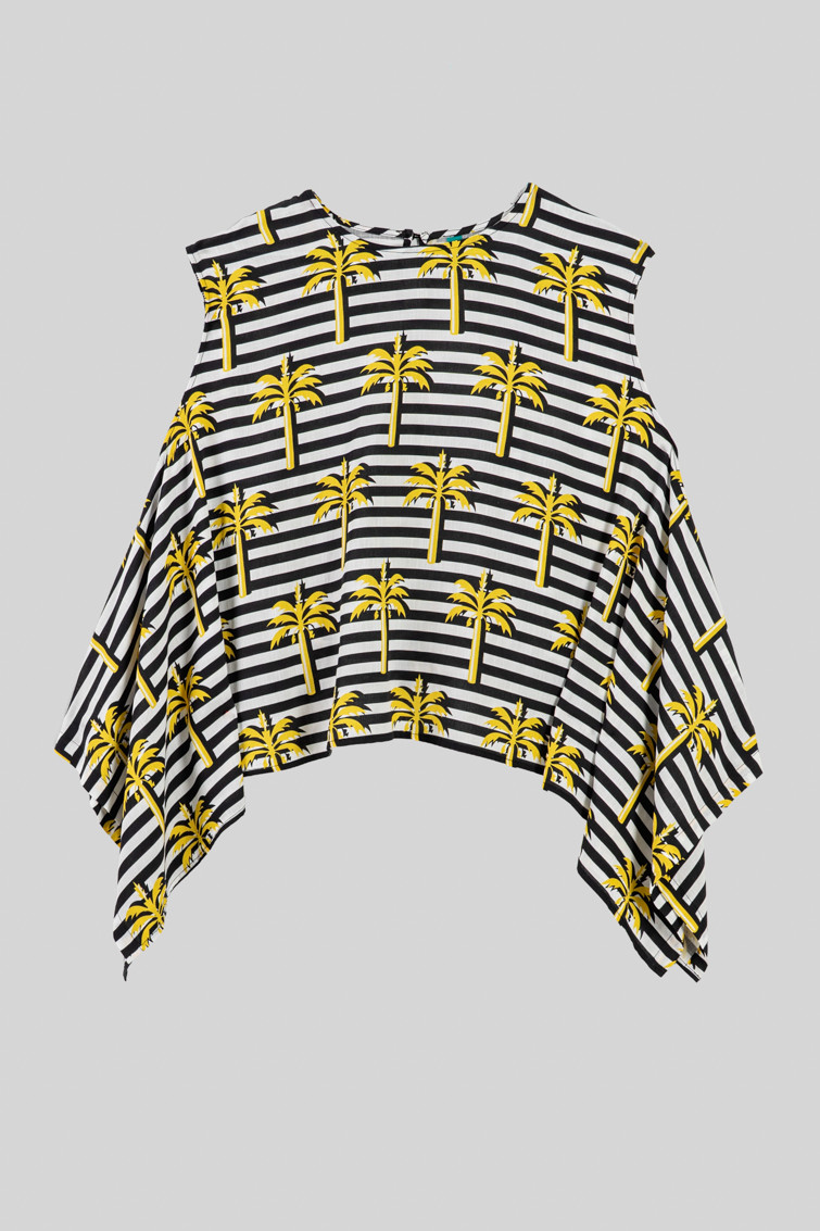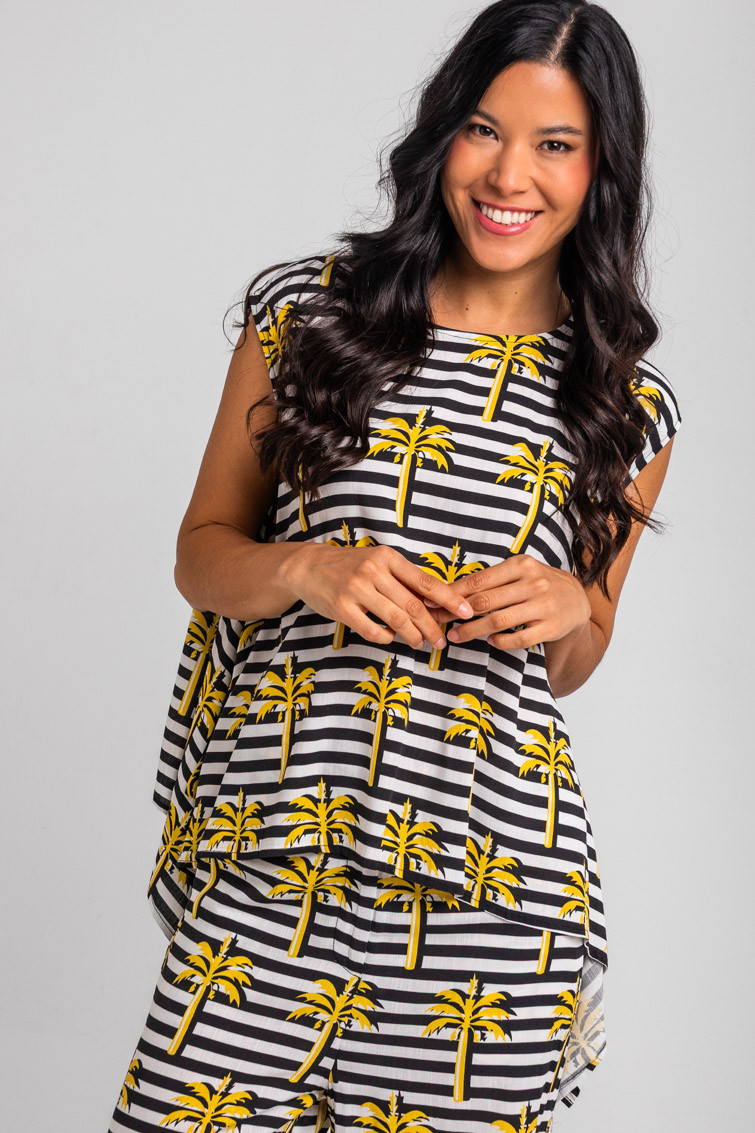 Blusa asimétrica picos de palmeras amarillas y raya blanca y negra - La Faraona