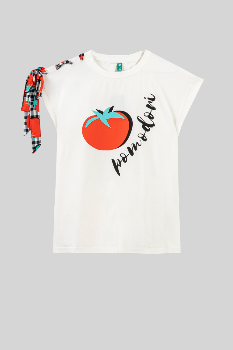 Camiseta lazada blanca con texto Pomodori - Pomodori