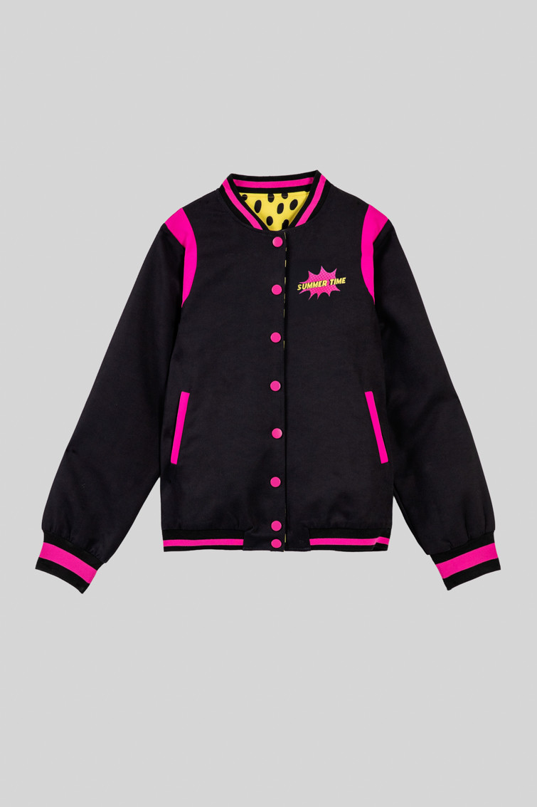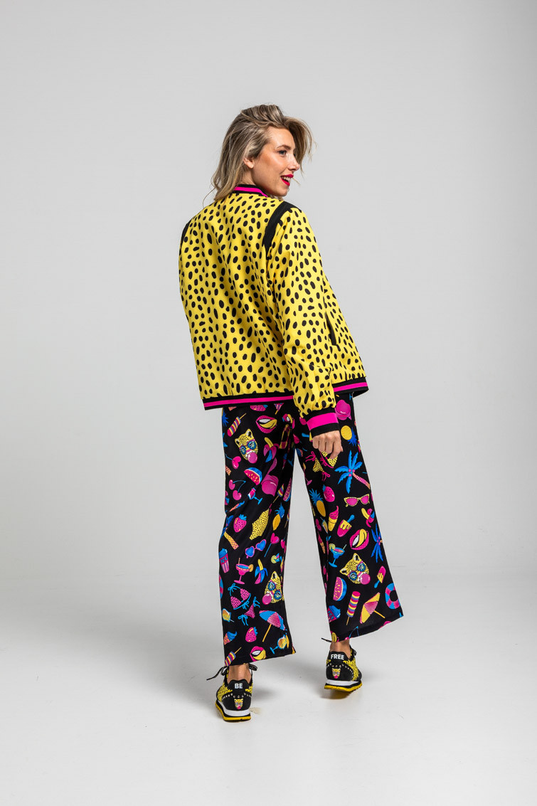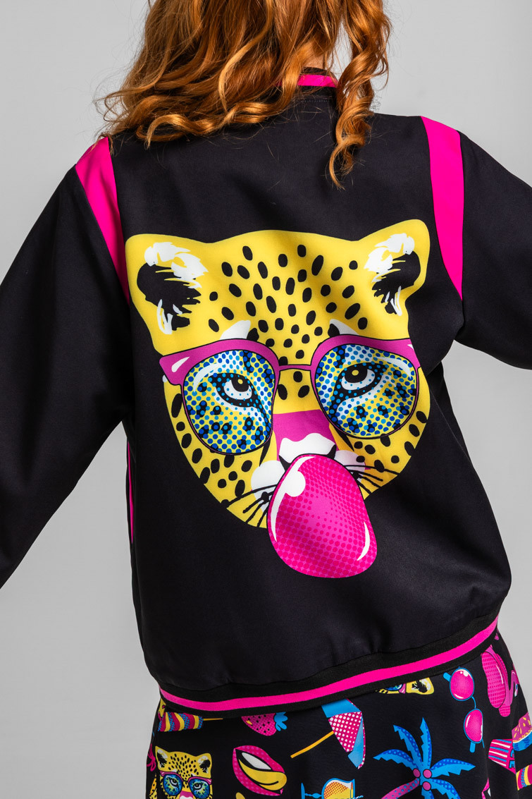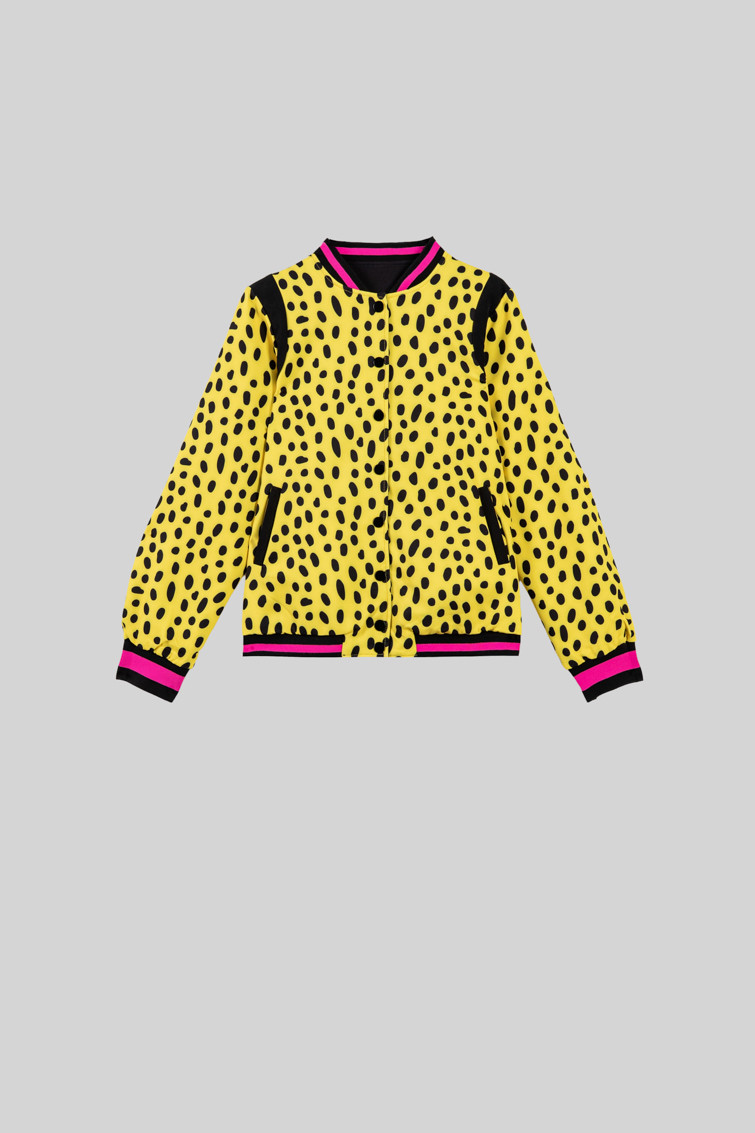 Bomber Reversible negra y animal print amarillo y negro - Let’s go to the beach