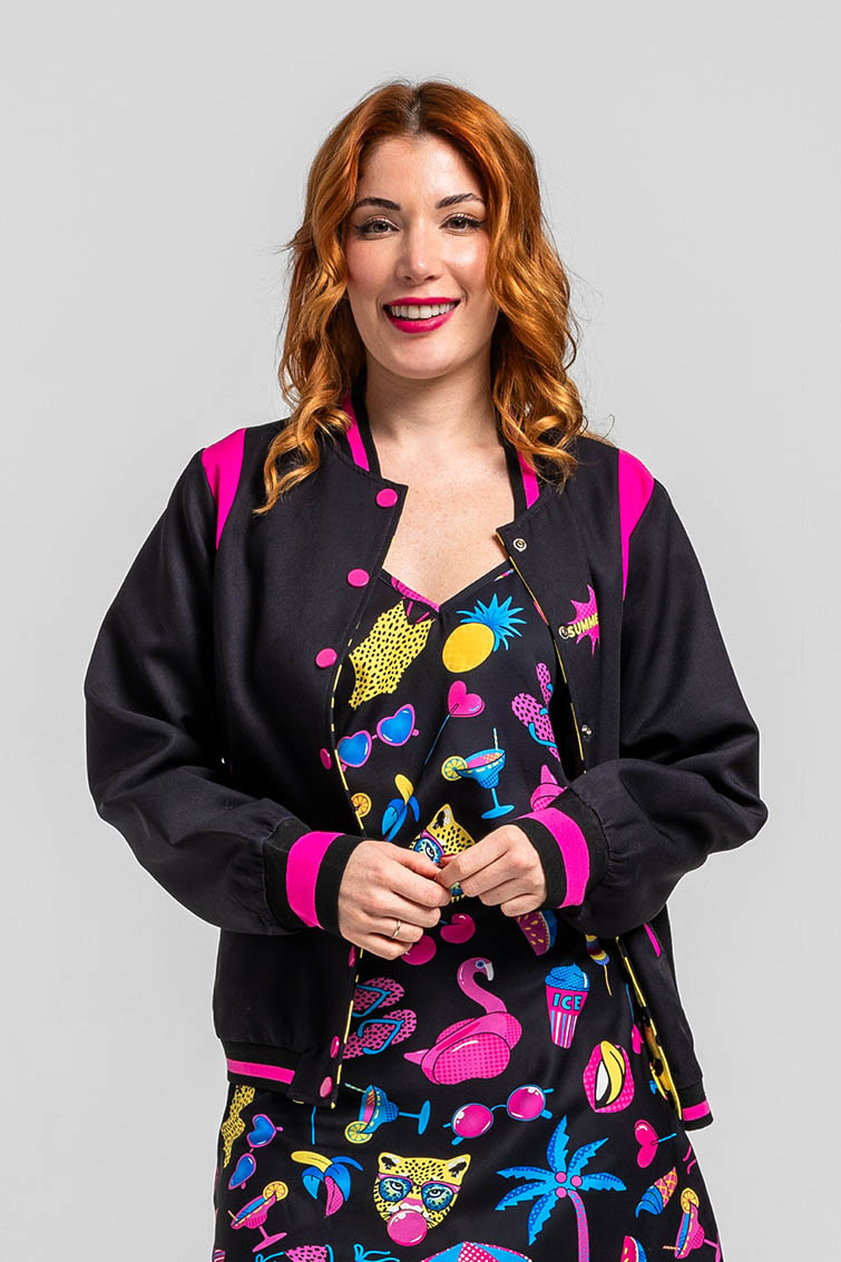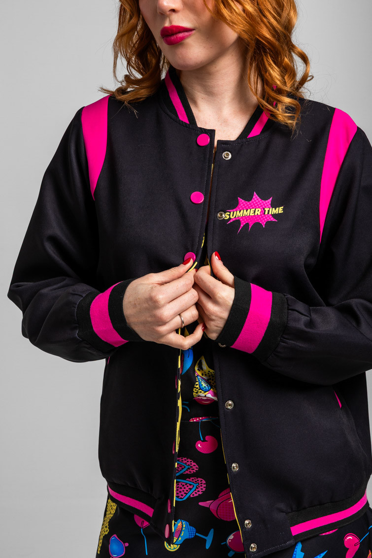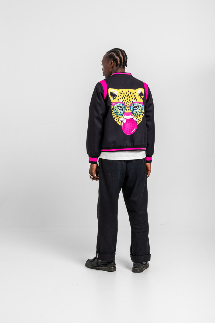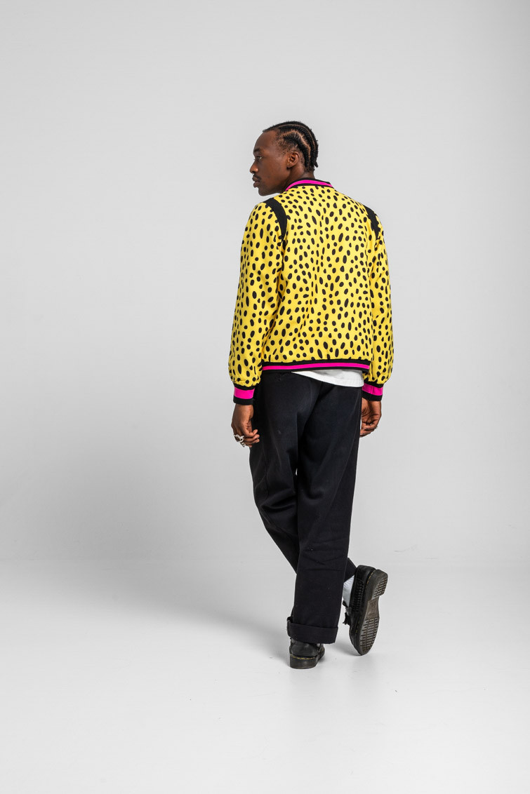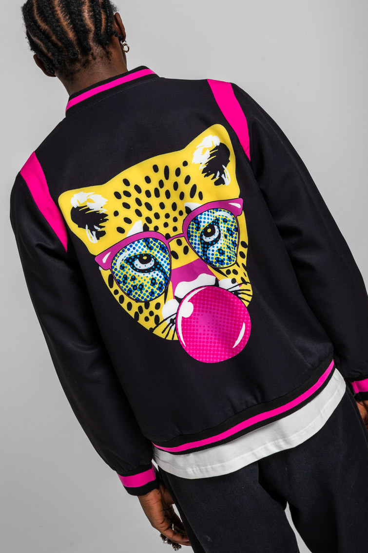 Bomber Reversible negra y animal print amarillo y negro - Let’s go to the beach