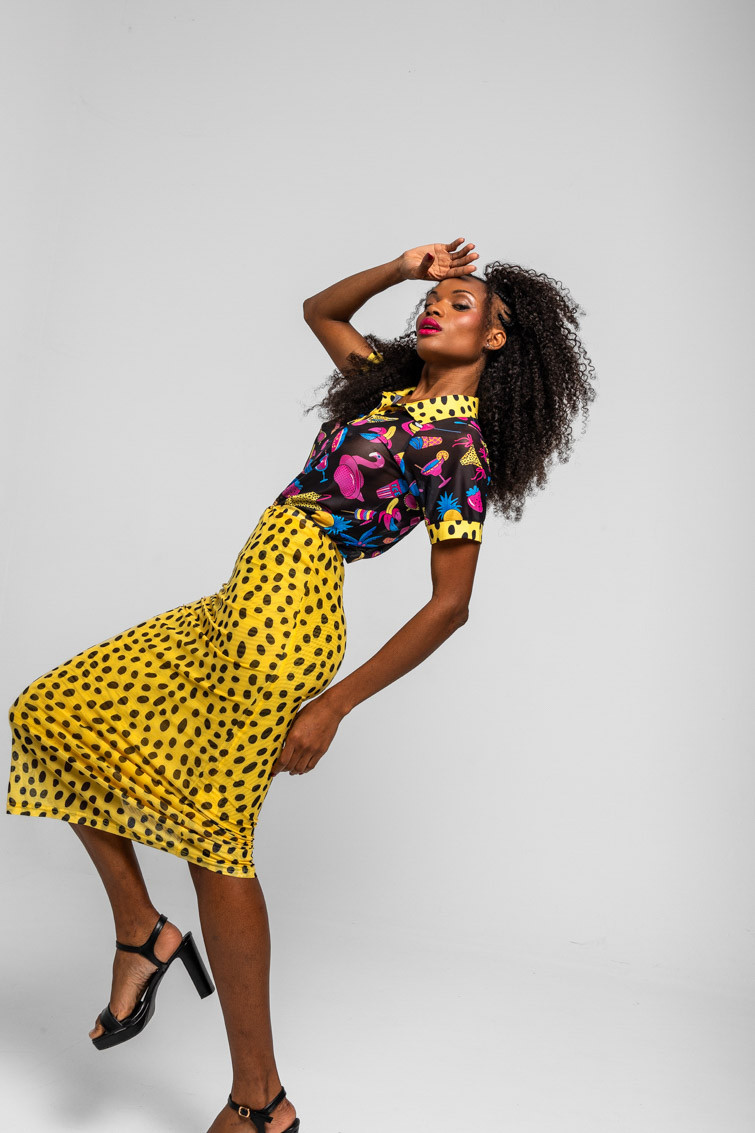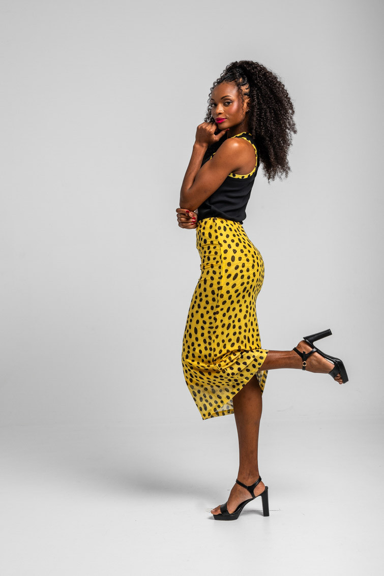 Falda tul ajustada animal print amarillo y negro - Let’s go to the beach