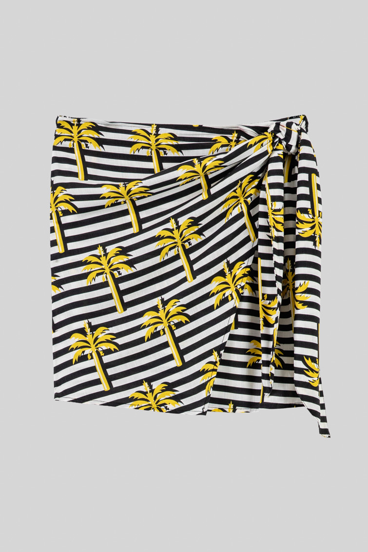 Falda Mini Pareo de palmeras amarillas y raya blanca y negra - La Faraona