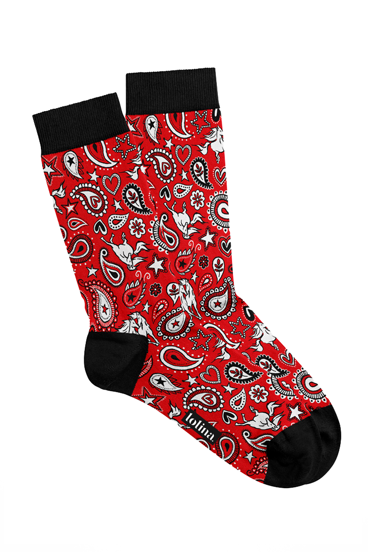 Alma Libre: siempre indomable. - Calcetines estampados: Calcetines en punto fino suave con borde superior elástico, talón y puntera reforzados. - 65% Algodón, 33% Nailon y 2% Elastano. - Lavar en agua fría para mantener forma y tamaño. Lavar con colores similares. No usar blanqueador. No usar secadora. Secar colgado a la sombra y siempre del revés. - Talla única, de la 36 a la 41 - Lolina ha realizado un gran esfuerzo para mostrar los colores de las prendas de la forma más cercana a la realidad posible. No obstante, queremos que tengas en cuenta que el color de las prendas que aparecen en pantalla puede estar sujeto a variaciones dependiendo de la calidad de tu ordenador o smartphone.