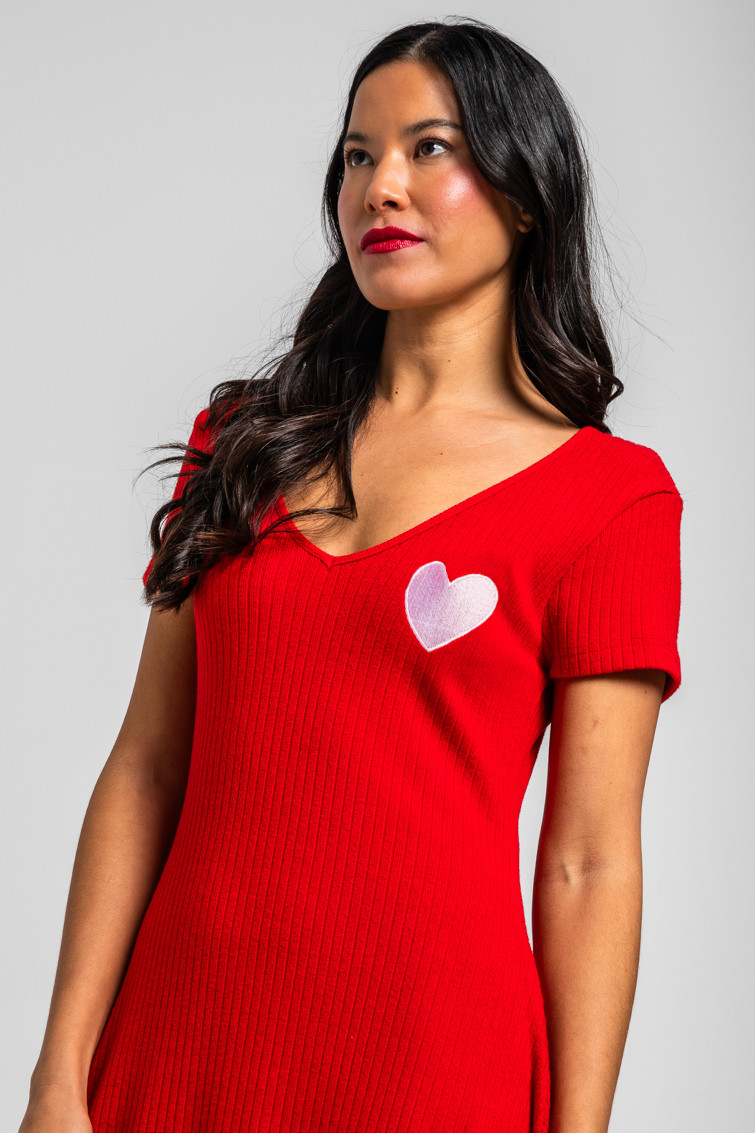 More amor por favor: por que hace falta más amor en el mundo - Vestido Mini Vuelo rojo y corazón: Vestido ceñido en pecho y cintura con vuelo en falda, manga corta y escote en pico. - 95% Algodón y 5% Elastán. - Lavar a máquina en agua fría. No usar blanqueador. No usar secadora. Secar colgado a la sombra. Planchado a temperatura baja, por debajo de 100 ºC. Planchar del revés. No dejar la plancha parada sobre la prenda. Lavar con colores similares. - TALLA XS: Medida de pecho 39 cm, medida de la cintura 34 cm, medida de la cadera 52 cm y largo del cuerpo 84.5 cm.TALLA S: Medida de pecho 41 cm, medida de la cintura 36 cm, medida de la cadera 54 cm y largo del cuerpo 86 cm.TALLA M: Medida de pecho 43 cm, medida de la cintura 38 cm, medida de la cadera 56 cm y largo del cuerpo 87.5 cm.TALLA L: Medida de pecho 45 cm, medida de la cintura 40 cm, medida de la cadera 58 cm y largo del cuerpo 89 cm.TALLA XL: Medida de pecho 47 cm, medida de la cintura 42 cm, medida de la cadera 60 cm y largo del cuerpo 90.5 cm. - Las medidas de las prendas pueden presentar pequeñas variaciones debido al proceso de producción de hasta 2 cm. - Lolina ha realizado un gran esfuerzo para mostrar los colores de las prendas de la forma más cercana a la realidad posible. No obstante, queremos que tengas en cuenta que el color de las prendas que aparecen en pantalla puede estar sujeto a variaciones dependiendo de la calidad de tu ordenador o smartphone.