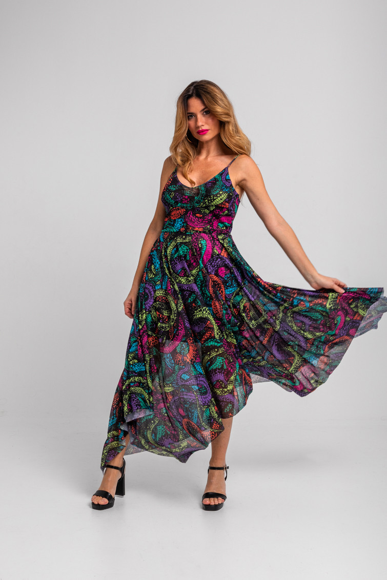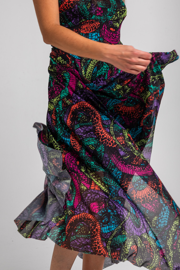Vestido tirantes de tul largo de corte pañuelo de serpientes - Veneno