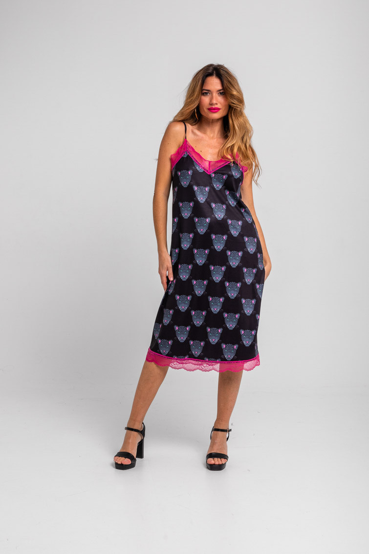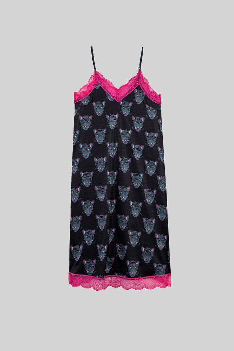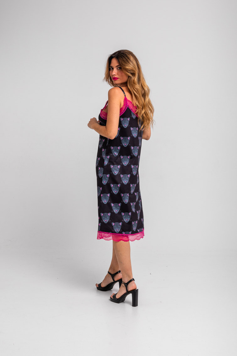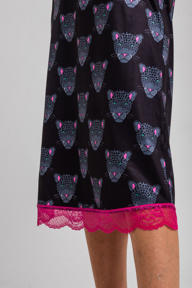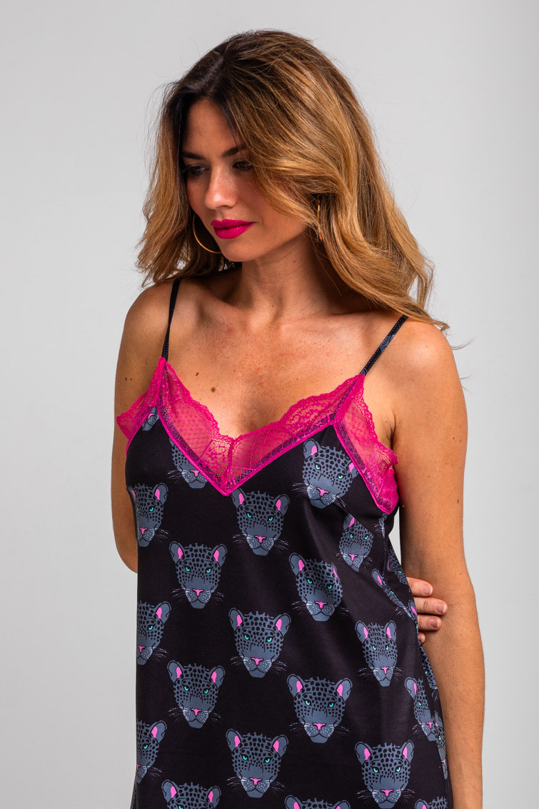 Vestido lencero con encaje negro de panteras - Nocturna
