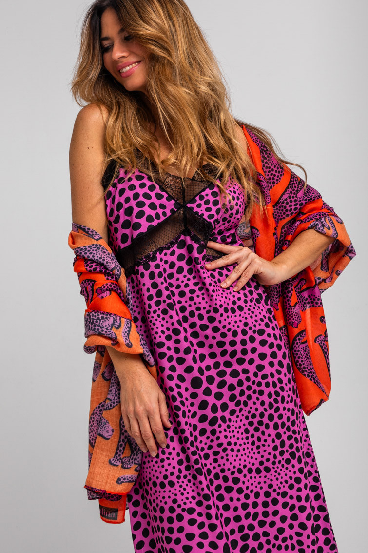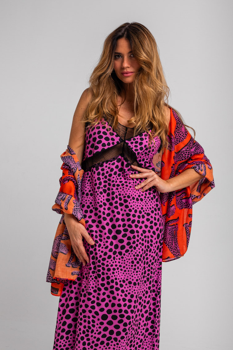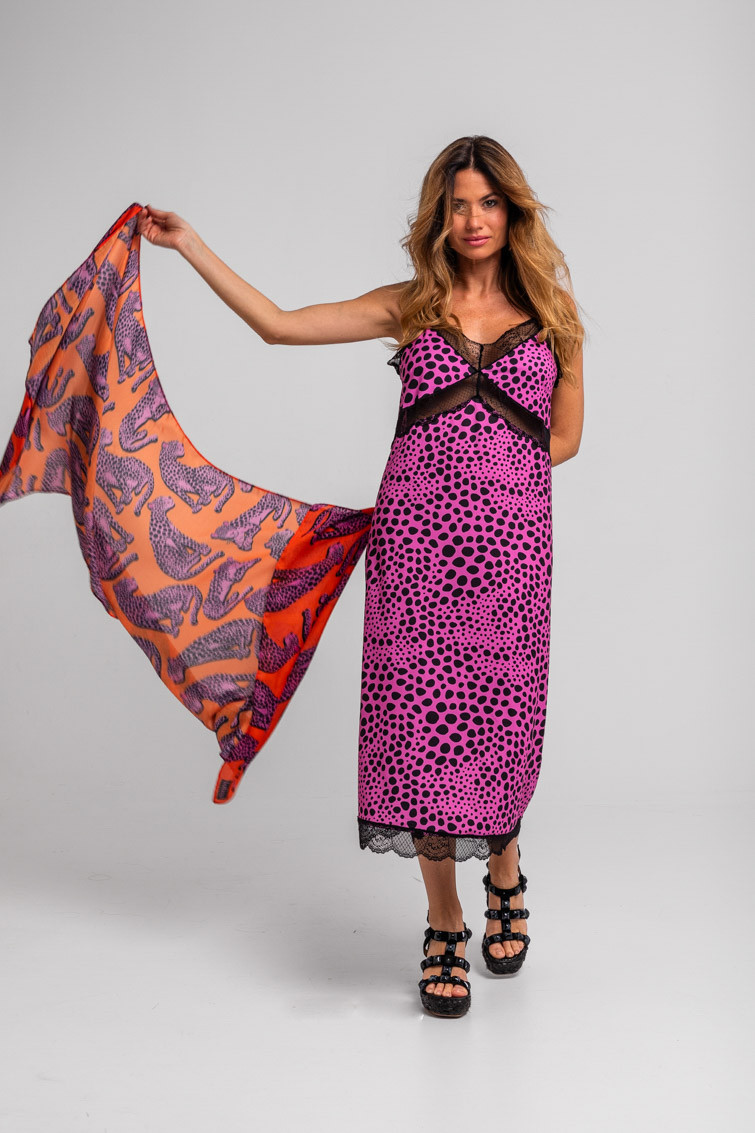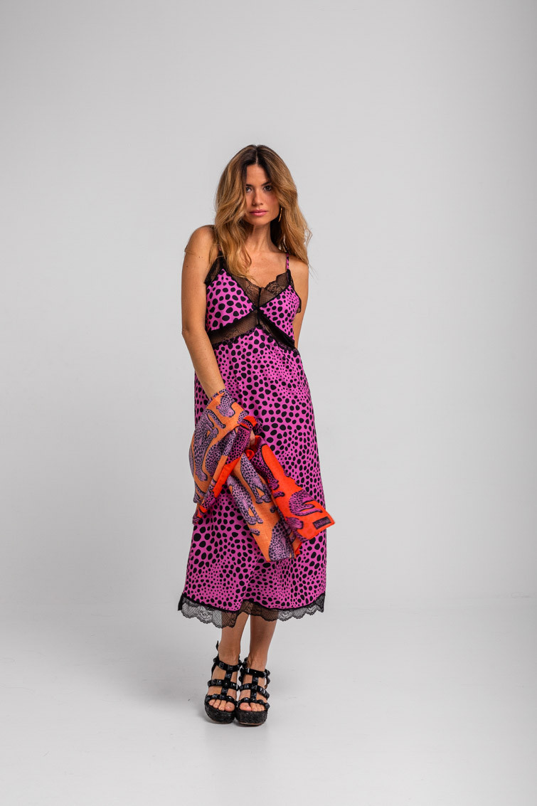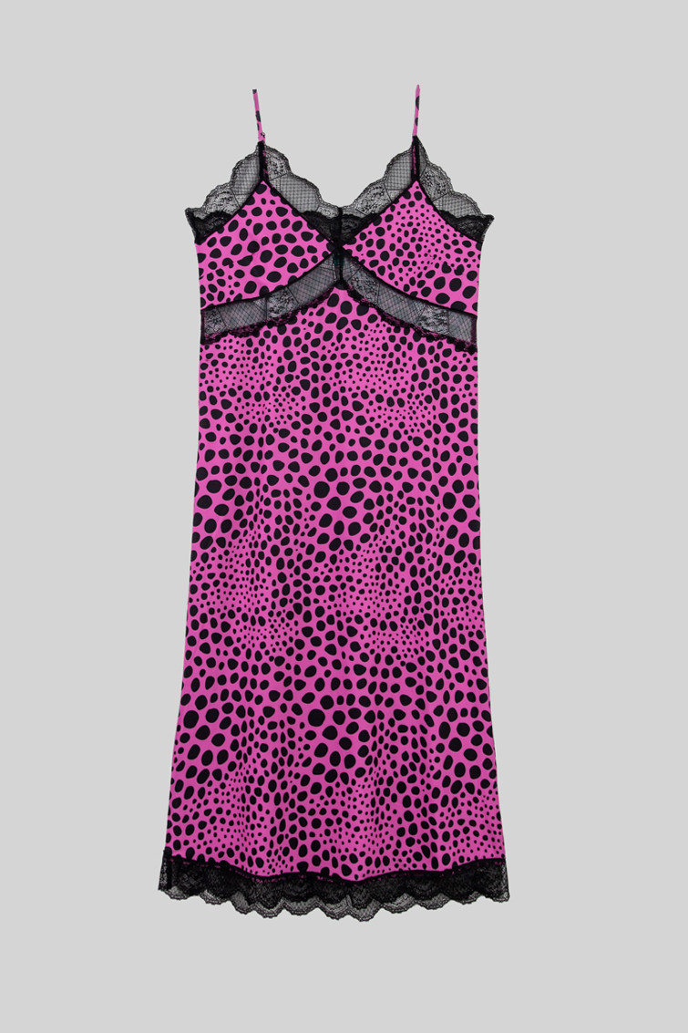 Vestido lencero encaje animal print rosa y negro - Pink Panther