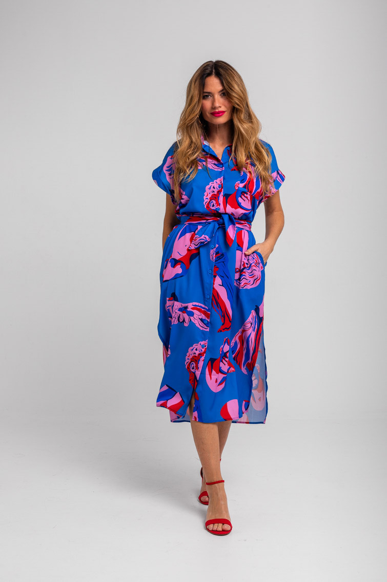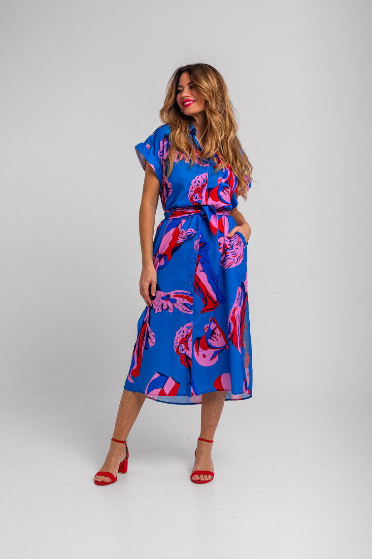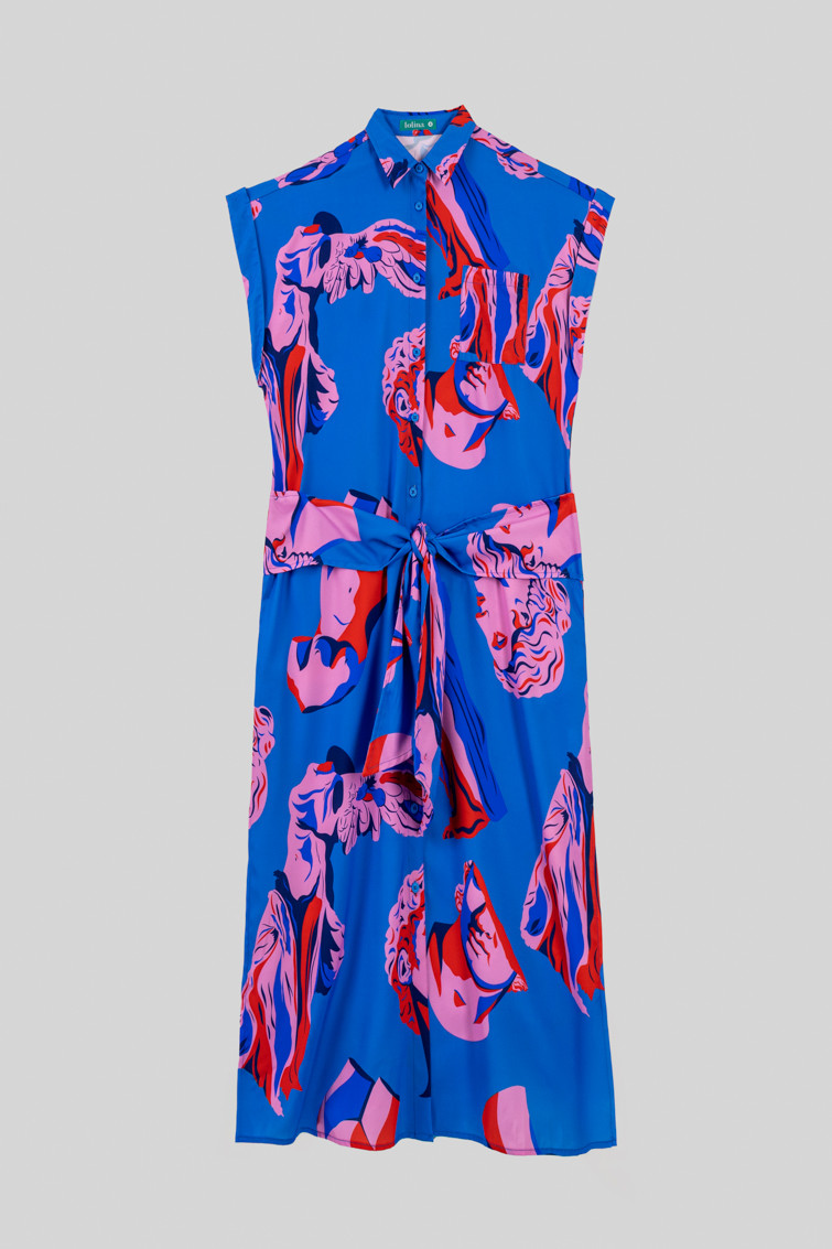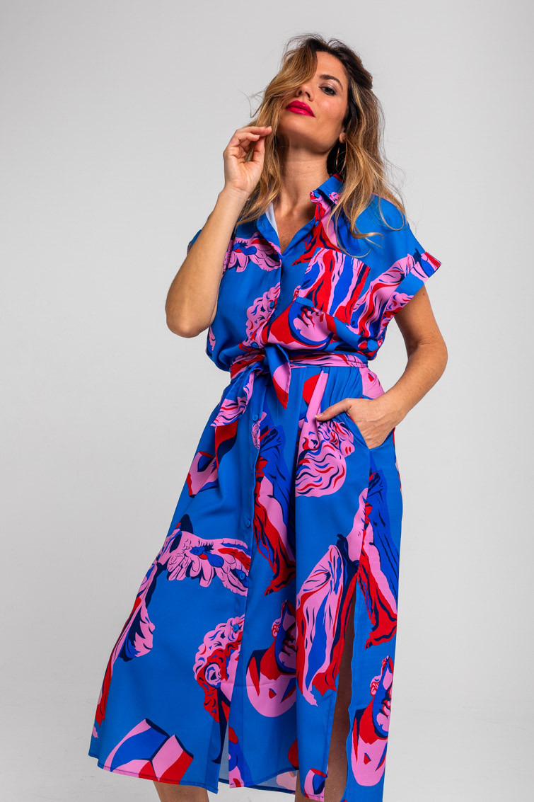 Rompe el molde: no encajes, rompe el molde - Camisero midi sin mangas azul de esculturas clásicas rosas y rojas: Vestido camisero largo de cuello camisero en pico, manga murciélago caida corte recto. Con detalles en bolsillo, mangas y cuello de diferente tejido. Con lazada en cintura ajustable y cortes en los laterales. - 100% Poliéster. - Lavar a máquina en agua fría. No usar blanqueador. No usar secadora. Secar colgado a la sombra. Planchado a temperatura baja, por debajo de 100 ºC. Planchar del revés. No dejar la plancha parada sobre la prenda. Lavar con colores similares. - TALLA XS: Medida de pecho 51.5 cm, medida de la cintura 53 cm, medida de la cadera 54 cm y largo del cuerpo 121.5 cm.TALLA S: Medida de pecho 53.5 cm, medida de la cintura 55 cm, medida de la cadera 56 cm y largo del cuerpo 121.5 cm.TALLA M: Medida de pecho 55.5 cm, medida de la cintura 57 cm, medida de la cadera 58 cm y largo del cuerpo 121.5 cm.TALLA L: Medida de pecho 57.5 cm, medida de la cintura 59 cm, medida de la cadera 60 cm y largo del cuerpo 121.5 cm.TALLA XL: Medida de pecho 59.5 cm, medida de la cintura 61 cm, medida de la cadera 62 cm y largo del cuerpo 121.5 cm. - Las medidas de las prendas pueden presentar pequeñas variaciones debido al proceso de producción de hasta 2 cm. - Lolina ha realizado un gran esfuerzo para mostrar los colores de las prendas de la forma más cercana a la realidad posible. No obstante, queremos que tengas en cuenta que el color de las prendas que aparecen en pantalla puede estar sujeto a variaciones dependiendo de la calidad de tu ordenador o smartphone.