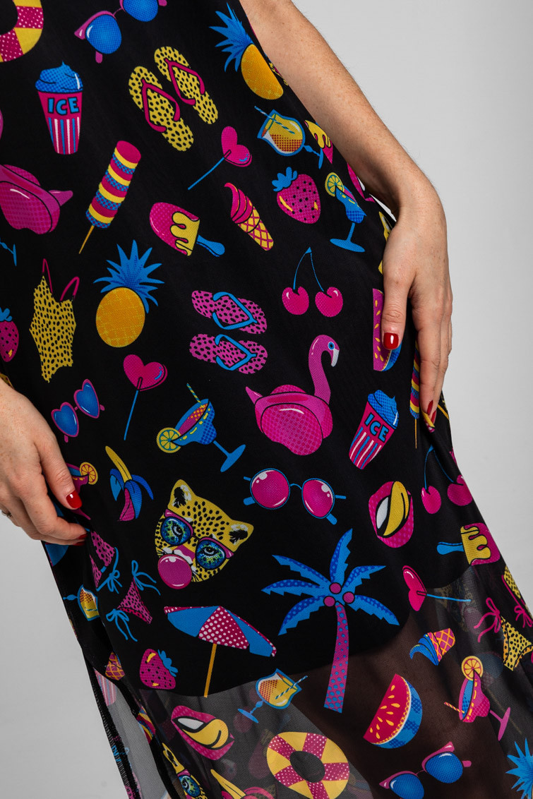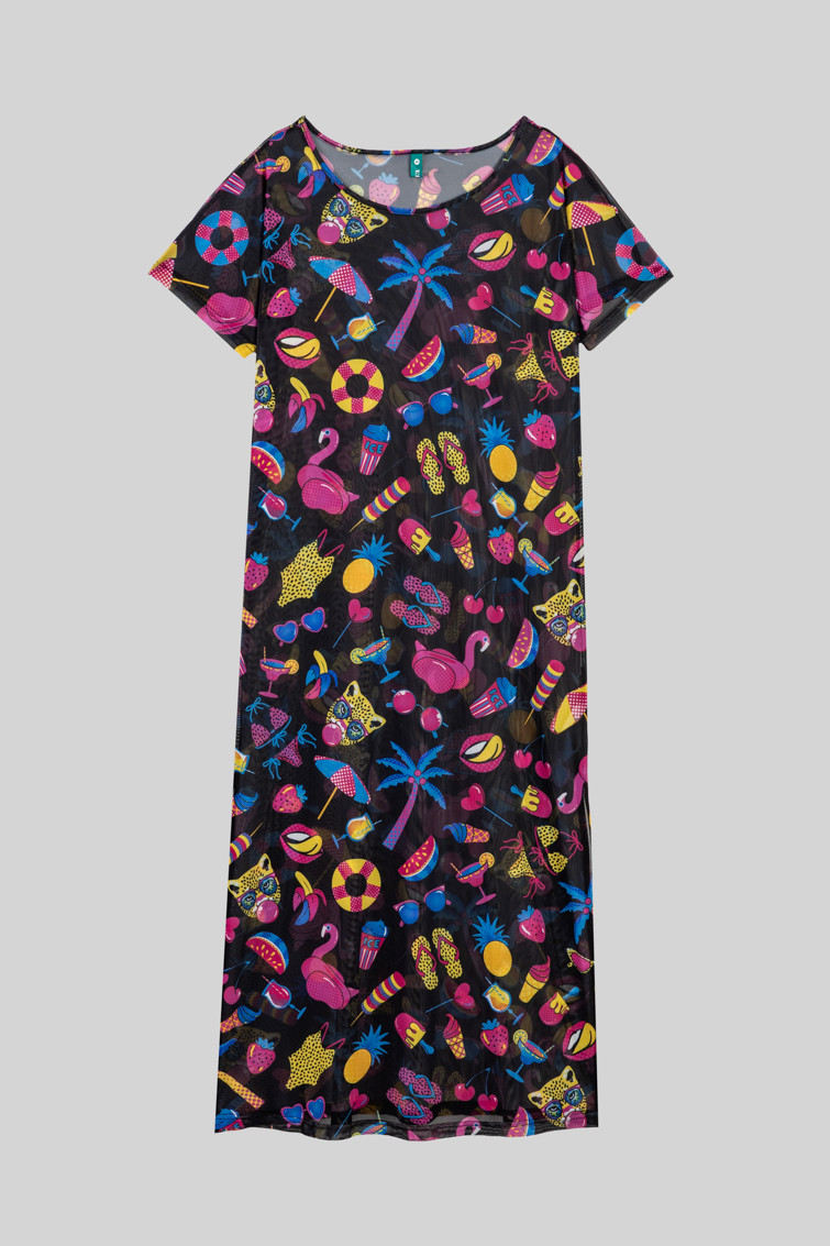 Vestido tul camiseta largo negro con estampado veraniego - Summer time