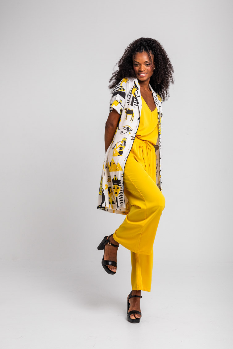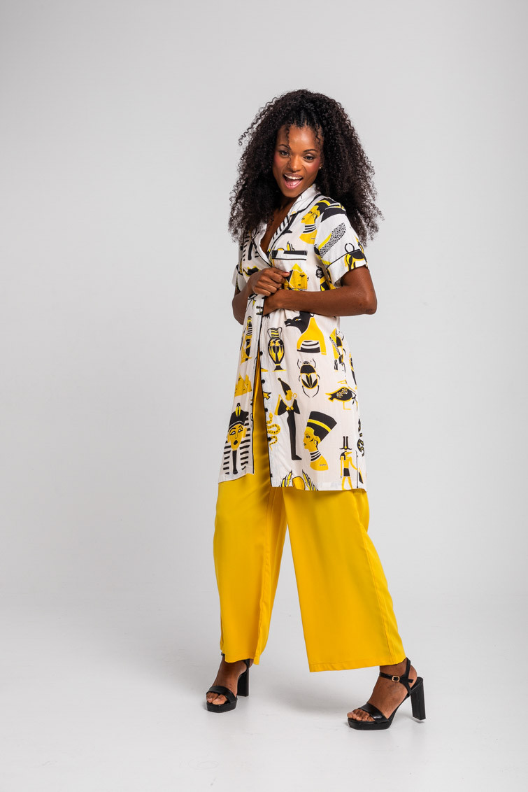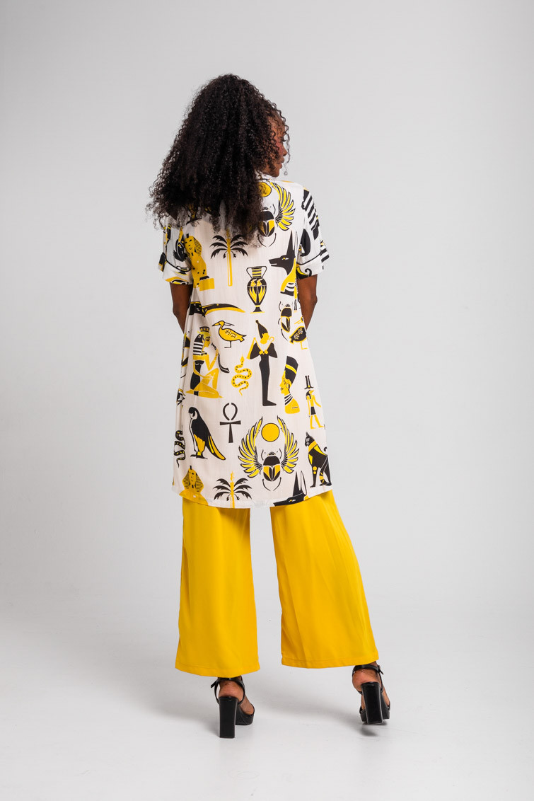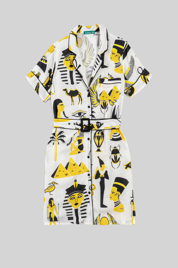 Vestido camisero corto ribetes blanco de elementos egipcios - La Faraona