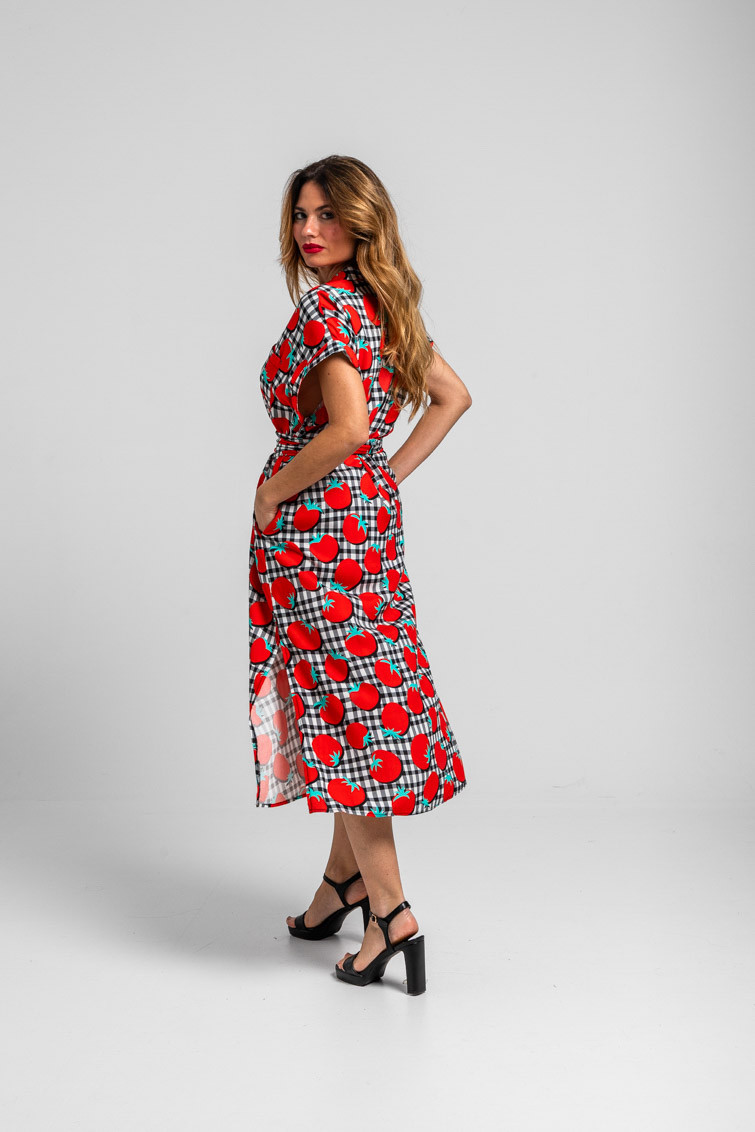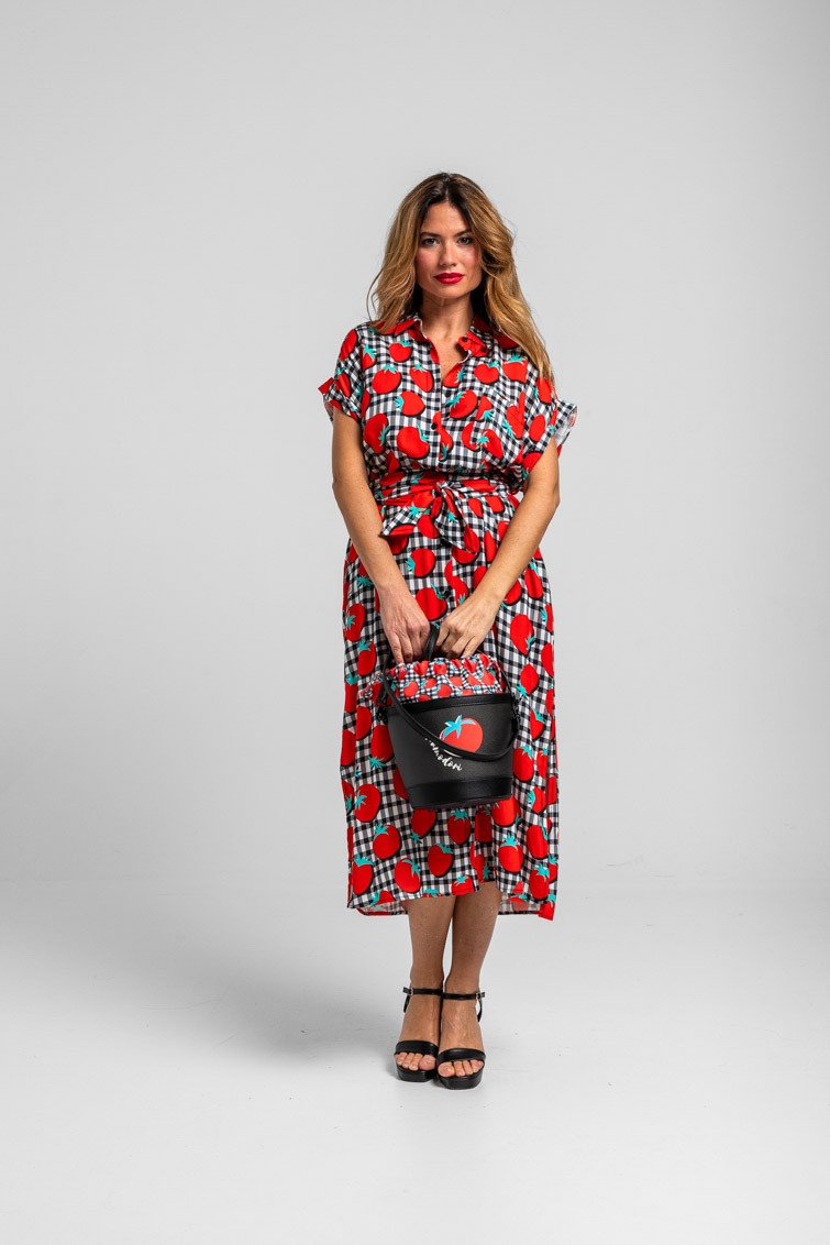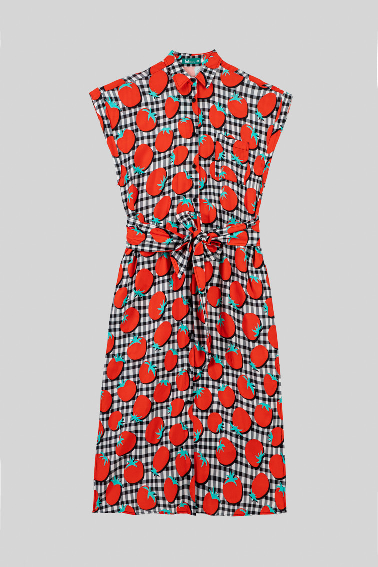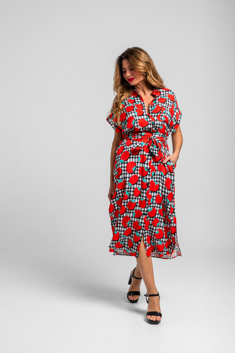 Pomodori: toma tomate - Camisero sin sisa de tomates y vichi blanco y negro: Vestido camisero largo de cuello camisero en pico, manga murciélago caida corte recto. Con detalles en bolsillo, mangas y cuello de diferente tejido. Con lazada en cintura ajustable y cortes en los laterales. - 100% Viscosa. - Lavar a máquina en agua fría en centrifugado corto. No usar blanqueador. No usar secadora. Secar colgado a la sombra. Planchado a temperatura baja, por debajo de 100 ºC. Planchar del revés. No dejar la plancha parada sobre la prenda. Lavar con colores similares. - TALLA XS: Medida de pecho 51.5 cm, medida de la cintura 53 cm, medida de la cadera 54 cm y largo del cuerpo 121.5 cm.TALLA S: Medida de pecho 53.5 cm, medida de la cintura 55 cm, medida de la cadera 56 cm y largo del cuerpo 121.5 cm.TALLA M: Medida de pecho 55.5 cm, medida de la cintura 57 cm, medida de la cadera 58 cm y largo del cuerpo 121.5 cm.TALLA L: Medida de pecho 57.5 cm, medida de la cintura 59 cm, medida de la cadera 60 cm y largo del cuerpo 121.5 cm.TALLA XL: Medida de pecho 59.5 cm, medida de la cintura 61 cm, medida de la cadera 62 cm y largo del cuerpo 121.5 cm. - Las medidas de las prendas pueden presentar pequeñas variaciones debido al proceso de producción de hasta 2 cm. - Lolina ha realizado un gran esfuerzo para mostrar los colores de las prendas de la forma más cercana a la realidad posible. No obstante, queremos que tengas en cuenta que el color de las prendas que aparecen en pantalla puede estar sujeto a variaciones dependiendo de la calidad de tu ordenador o smartphone.