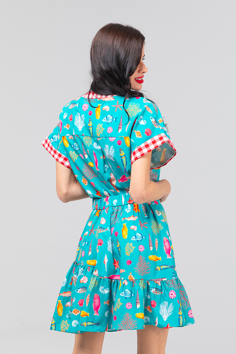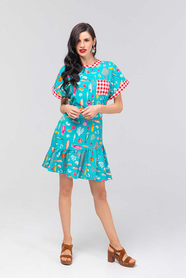 Poisson: explorez la faune marine des Pitiusas. Mini jupe avec volant, tissu fluide avec impression vectorielle. Ceinture avec du caoutchouc élastique derrière. Le modèle mesure 1,73 cm et utilise la taille S. 100% de la machine de polyester laver à l'eau froide. N'utilisez pas d'eau de Javel. N'utilisez pas de sèche-linge. Suspendu sec à l'ombre. Repassage à basse température, inférieur à 100 degrés. Le repassage à l'envers, ne laissez pas l'arrêt de fer sur le vêtement. Laver avec des couleurs similaires.