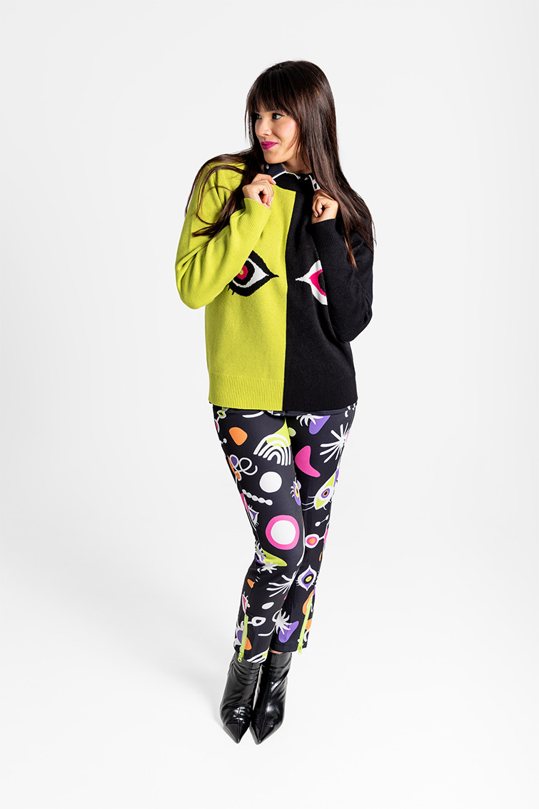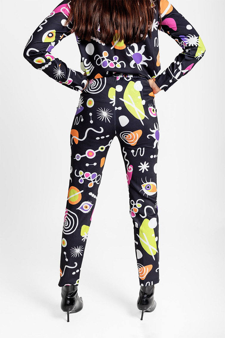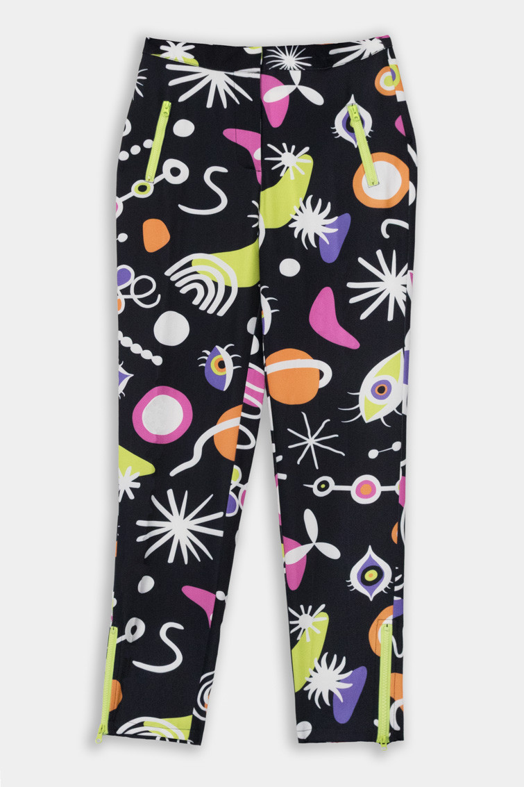 "Fille de rêve", toujours avec ses pieds dans le "ciel". Collection qui nous transporte vers le surréalisme des rêves, typique de la langue artistique de Calder et regarda. - Pantalon maigre fluide avec corps. Taille à taille haute avec caoutchouc arrière. Ouverture centrale avec boucle croisée et fermeture à glissière. Partenaires à glissière dans la basse. Zoples avant au biais décoratif. - Mesures de taille 32 cm, hanche 46 cm et longue 97 cm. - 100% polyester. - Laver à la machine dans de l'eau froide. N'utilisez pas d'eau de Javel. N'utilisez pas de sèche-linge. Suspendu sec à l'ombre. Repassage à basse température inférieure à 100 ºC. Fer à l'envers. Ne laissez pas l'arrêt de fer sur le vêtement. Laver avec des couleurs similaires.