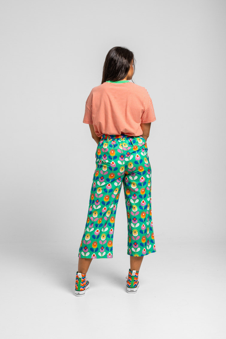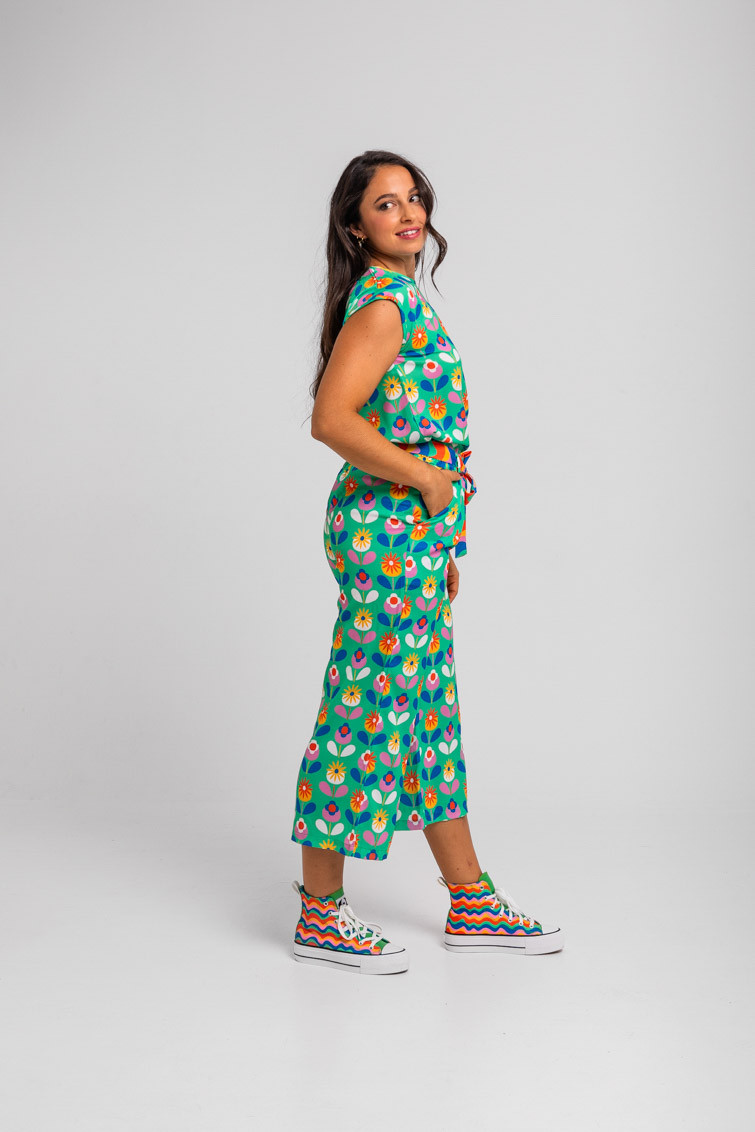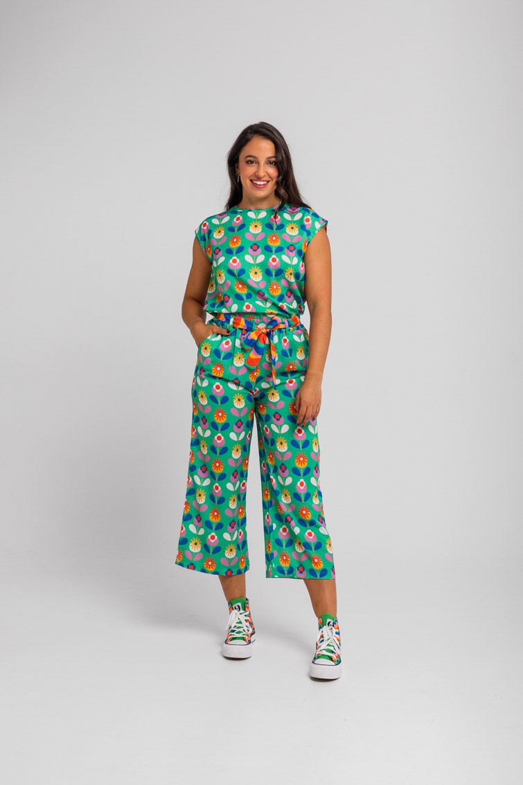 Floreciendo: deja de ser un capullo y florece - Pantalón culotte lazada verde de flores: Pantalón culotte tobillero con goma en cintura, lazada ajustable y bolsillos. - 100% Poliéster. - Lavar a máquina en agua fría. No usar blanqueador. No usar secadora. Secar colgado a la sombra. Planchado a temperatura baja, por debajo de 100 ºC. Planchar del revés. No dejar la plancha parada sobre la prenda. Lavar con colores similares. - TALLA XS: Medida de la cintura 34 cm, medida de la cadera 48 cm y largo del cuerpo 85,5 cm.TALLA S: Medida de la cintura 36 cm, medida de la cadera 50 cm y largo del cuerpo 87 cm.TALLA M: Medida de la cintura 38 cm, medida de la cadera 52 cm y largo del cuerpo 88,5 cm.TALLA L: Medida de la cintura 40 cm, medida de la cadera 54 cm y largo del cuerpo 90 cm.TALLA XL: Medida de la cintura 42 cm, medida de la cadera 56 cm y largo del cuerpo 91,5 cm. - Las medidas de las prendas pueden presentar pequeñas variaciones debido al proceso de producción de hasta 2 cm. - Lolina ha realizado un gran esfuerzo para mostrar los colores de las prendas de la forma más cercana a la realidad posible. No obstante, queremos que tengas en cuenta que el color de las prendas que aparecen en pantalla puede estar sujeto a variaciones dependiendo de la calidad de tu ordenador o smartphone.