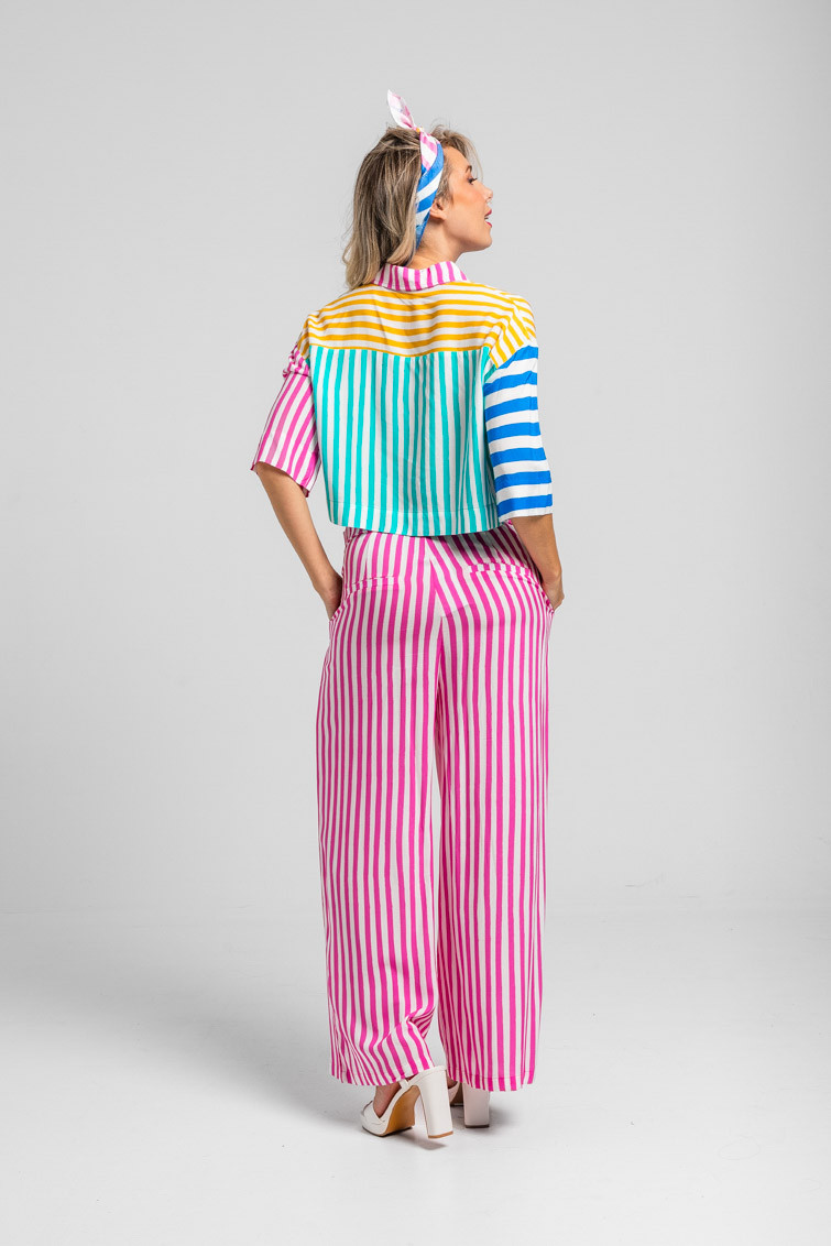 Pantalón culotte de rayas blancas y rosas - Limoncello